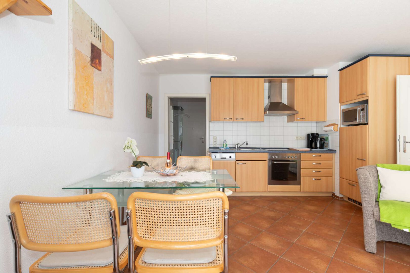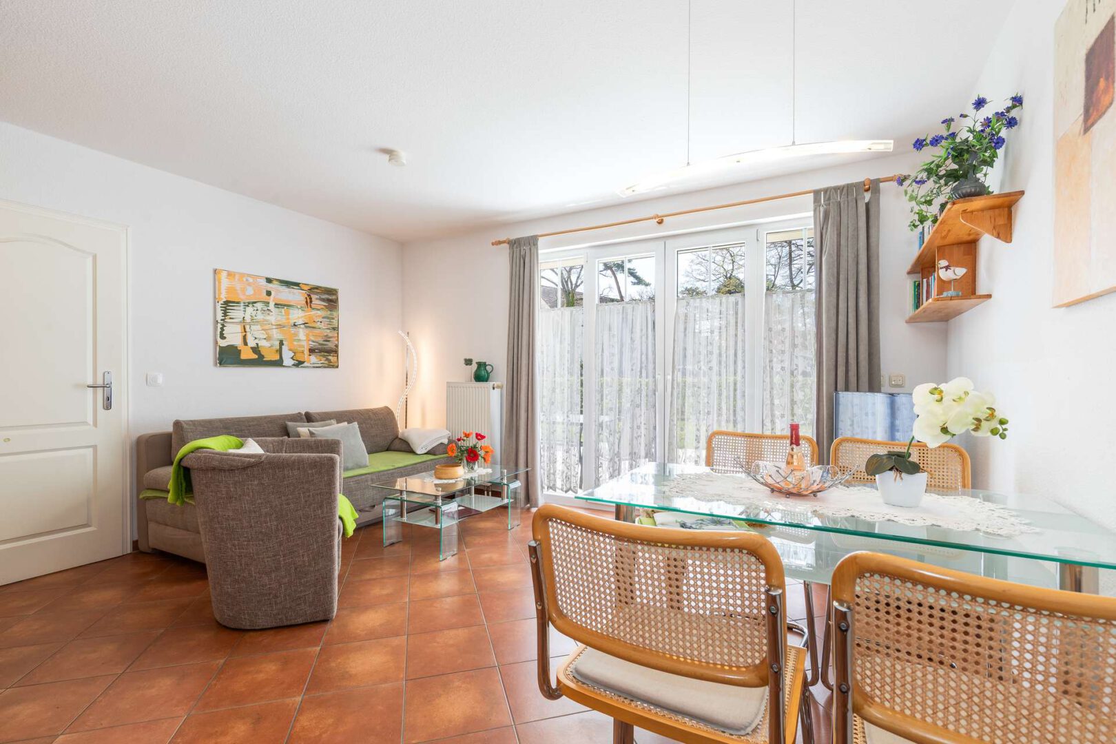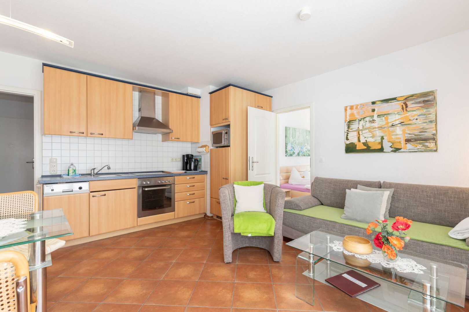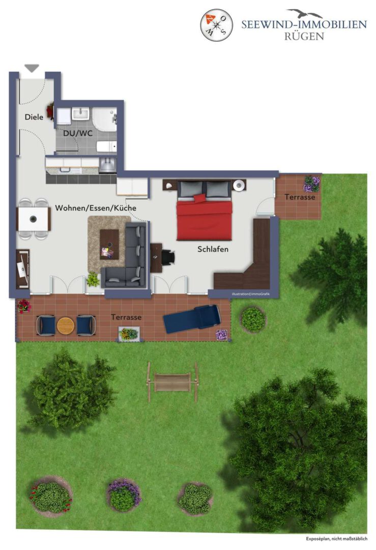 Mit ca. 47,7 m² großzügiger Wohnfläche bietet die Wohnung ausreichend Raum für Erholungssuchende. Das Herzstück bildet der offene Wohn- und Essbereich mit einer hochwertigen Markenküche, die nicht nur durch stilvolles Design, sondern auch durch erstklassige Ausstattung überzeugt. Mit viel Liebe zum Detail wurde die Einrichtung des Wohn-Essbereich harmonisch aufeinander abgestimmt und schafft eine Atmosphäre, in der Sie sich sofort wohlfühlen. Das angrenzende Schlafzimmer ist hell und verspricht mit seiner durchdachten Gestaltung wohltuende Nächte. Die sonnige Terrasse erreichen Sie über den lichtdurchfluteten Wohn-Essbereich. Sie grenzt mit dem außergewöhnlich großen Garten direkt an den Kurpark – ein echtes Highlight. Abgerundet wird Ihr neues Zuhause mit dem aufwendig renovierten Badezimmer. Es überzeugt mit moderner Duschabtrennung, eleganten Armaturen und designvollen Fliesen – ein Ort, an dem Sie jeden Tag entspannt beginnen und ausklingen lassen können.