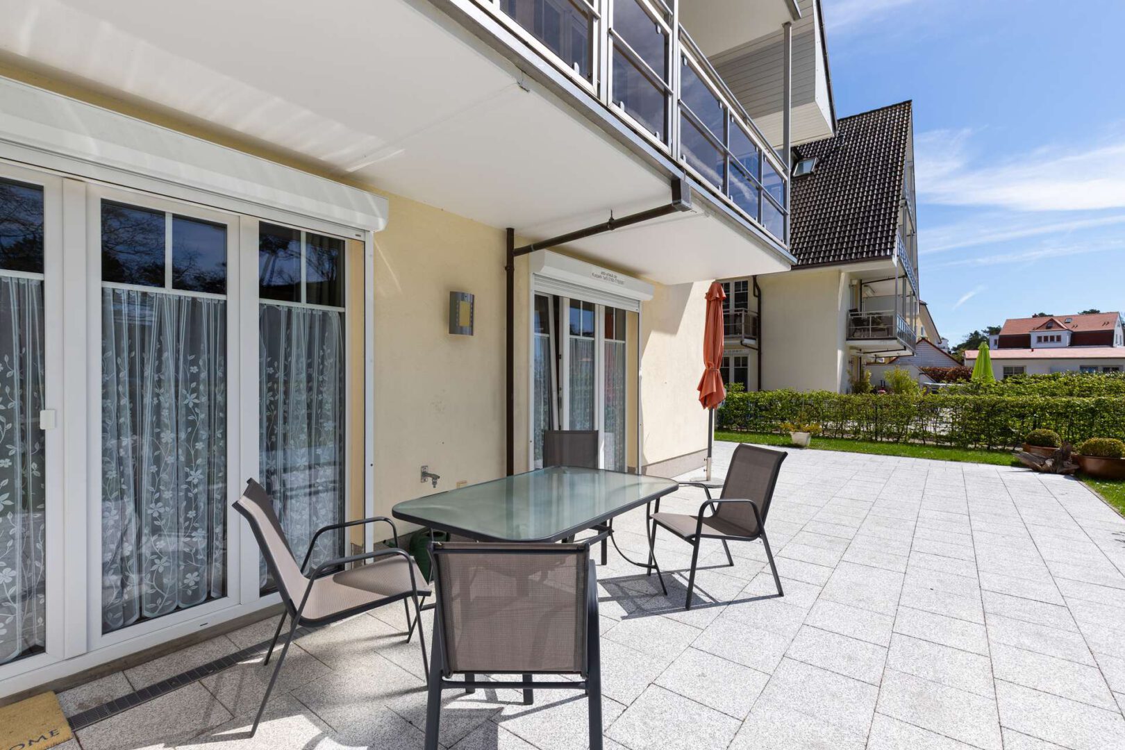 Diese exklusive Ferienwohnung besticht durch ihre erstklassige Lage (80 Meter vom Strand entfernt), höchsten Komfort und eine liebevoll gestaltete Einrichtung, die Ihnen sofort ein Gefühl von Zuhause vermittelt. Das gepflegte, dreigeschossige Mehrfamilienhaus ist mit einem breiten Treppenaufgang sowie einem modernen Fahrstuhl ausgestattet. So erreichen Sie Ihre Erdgeschosswohnung bequem und barrierefrei – auch direkt vom privaten, sicheren Tiefgaragenstellplatz aus. Entspanntes Ankommen garantiert.