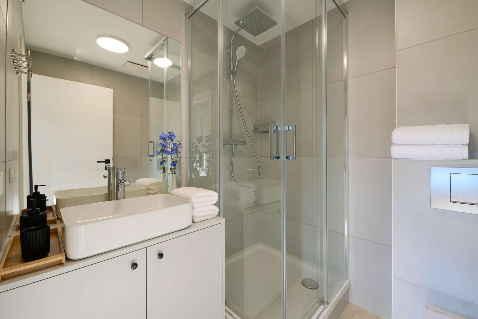Glasfaser im Haus sorgt für zuverlässiges Internet (beliebt bei Gästen wie bei Vermietern), das modernisierte Bad und durchdachte Stauraumlösungen machen den Betrieb unkompliziert.