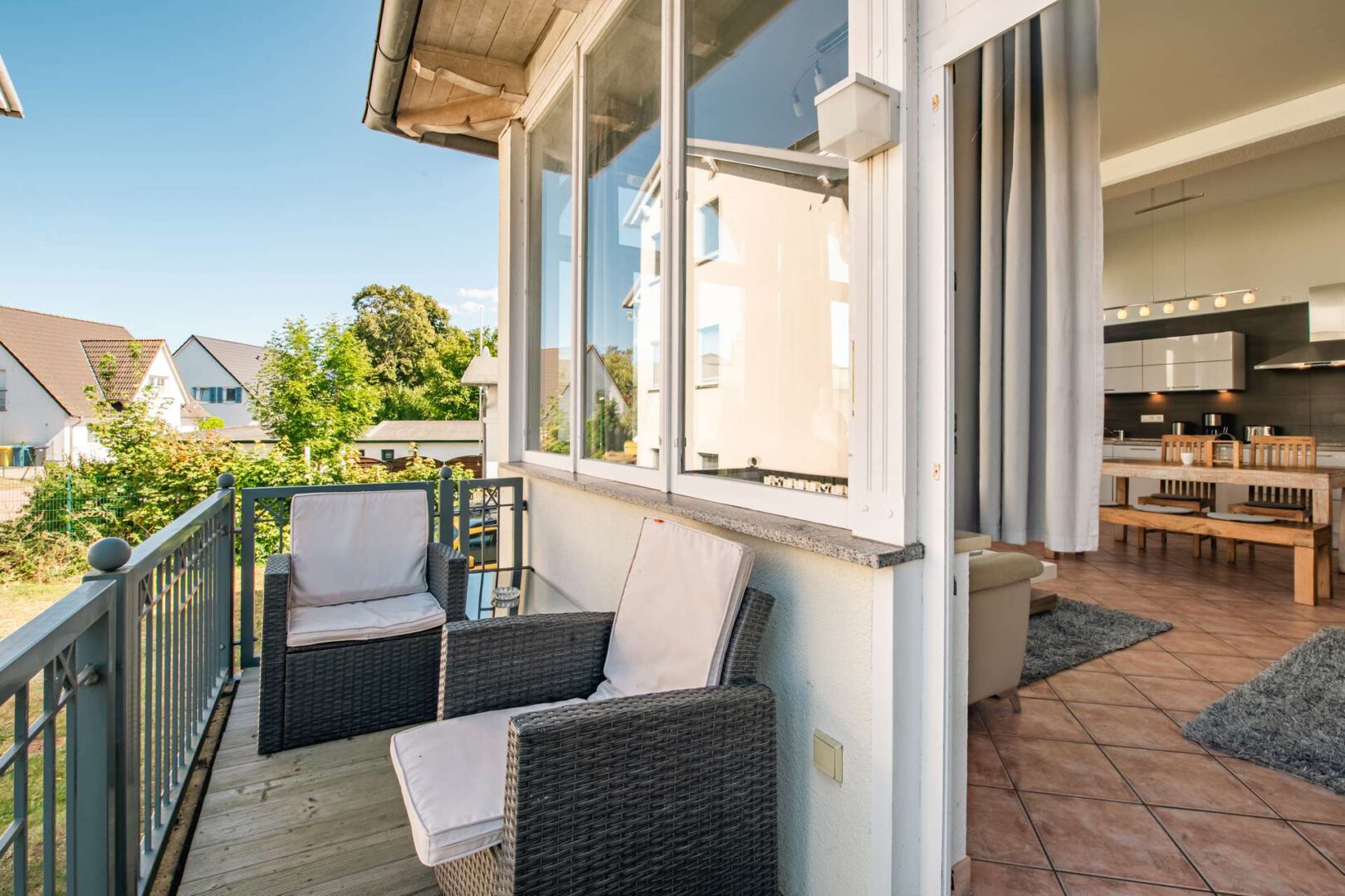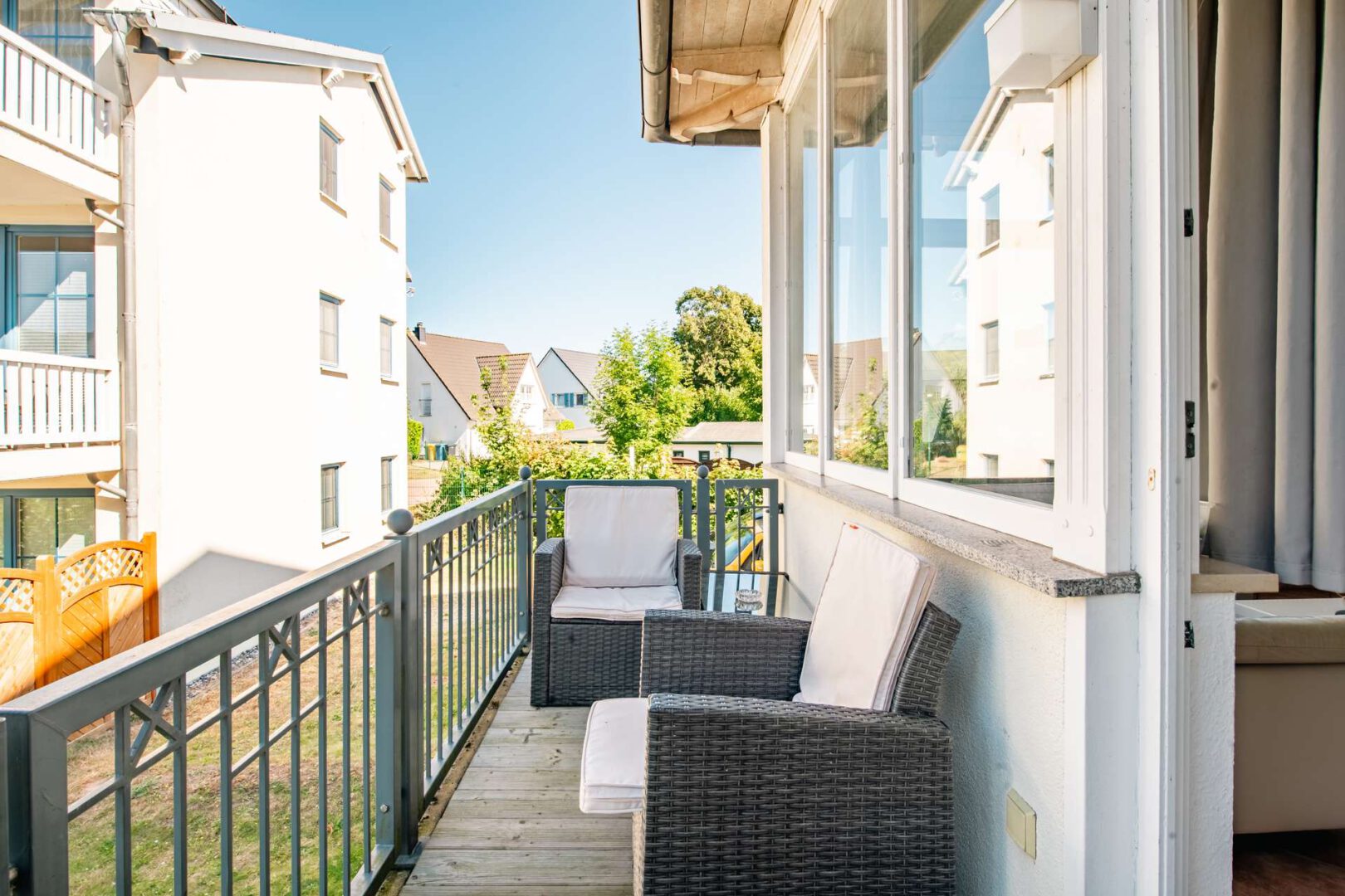 Der Balkon schließt direkt an den Wohnbereich an und bietet einen ruhigen Blick ins Wohnumfeld – geeignet für den ersten Kaffee am Morgen oder den Tagesausklang.
